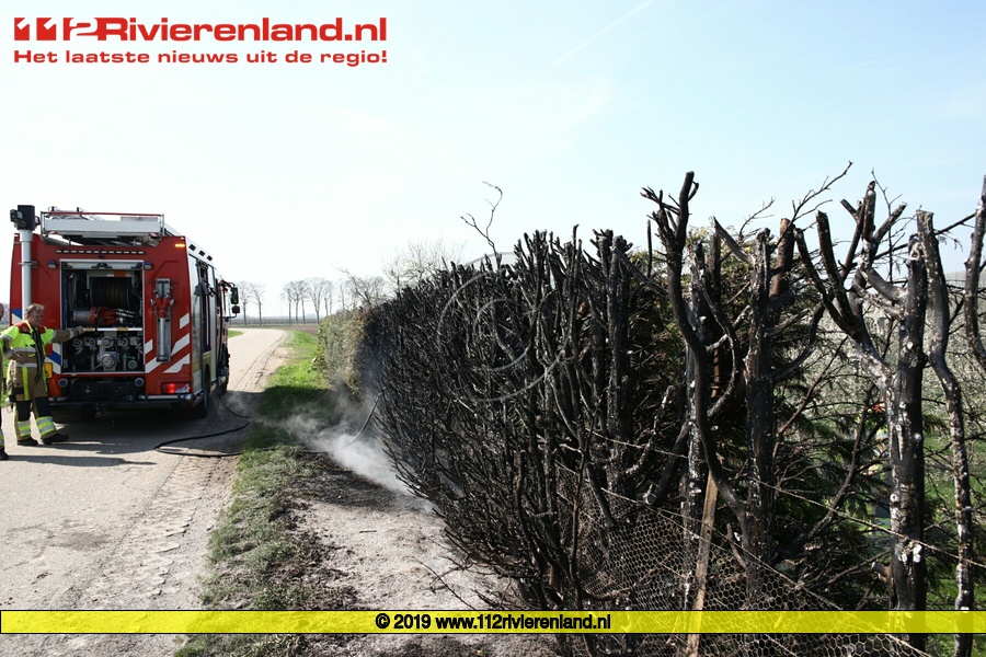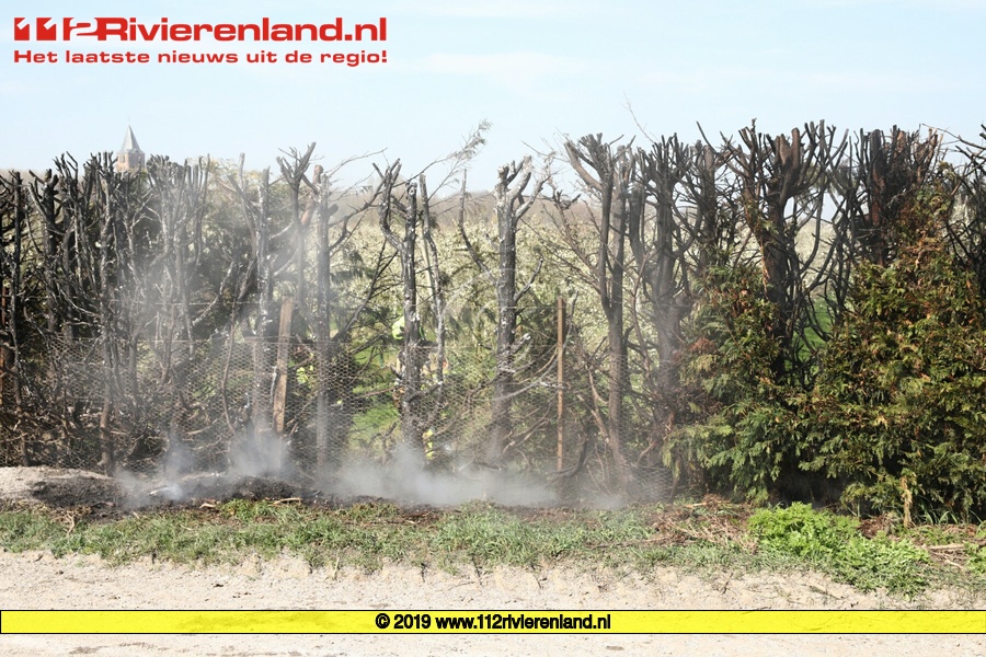 Tiel - Coniferenhaag vat vlam bij verbranden snoeiafval