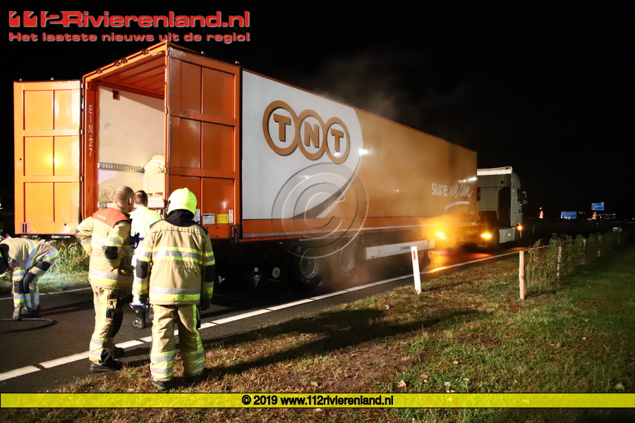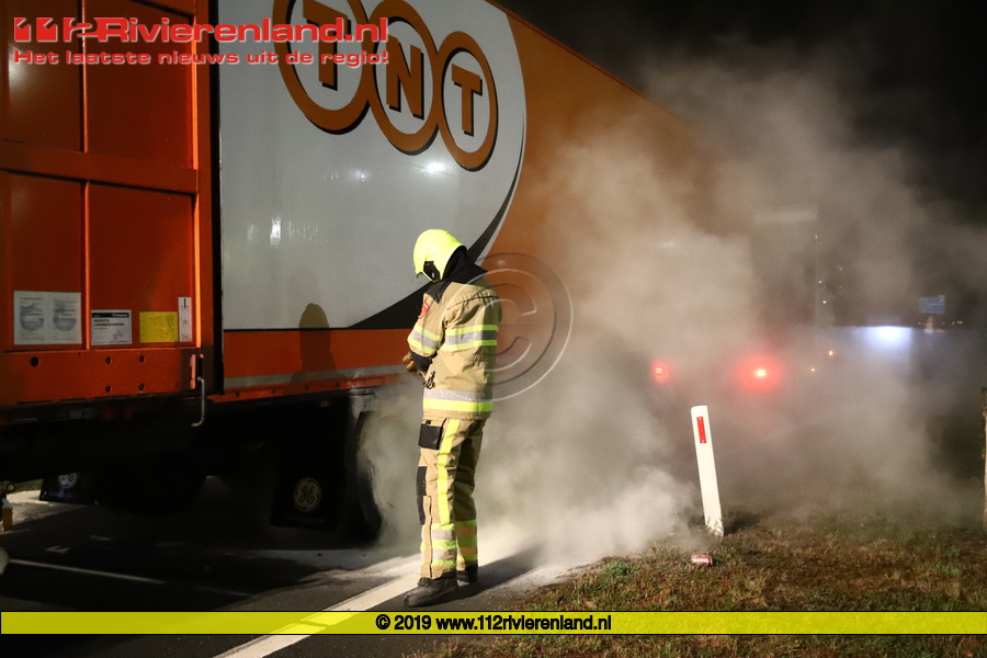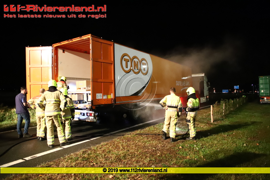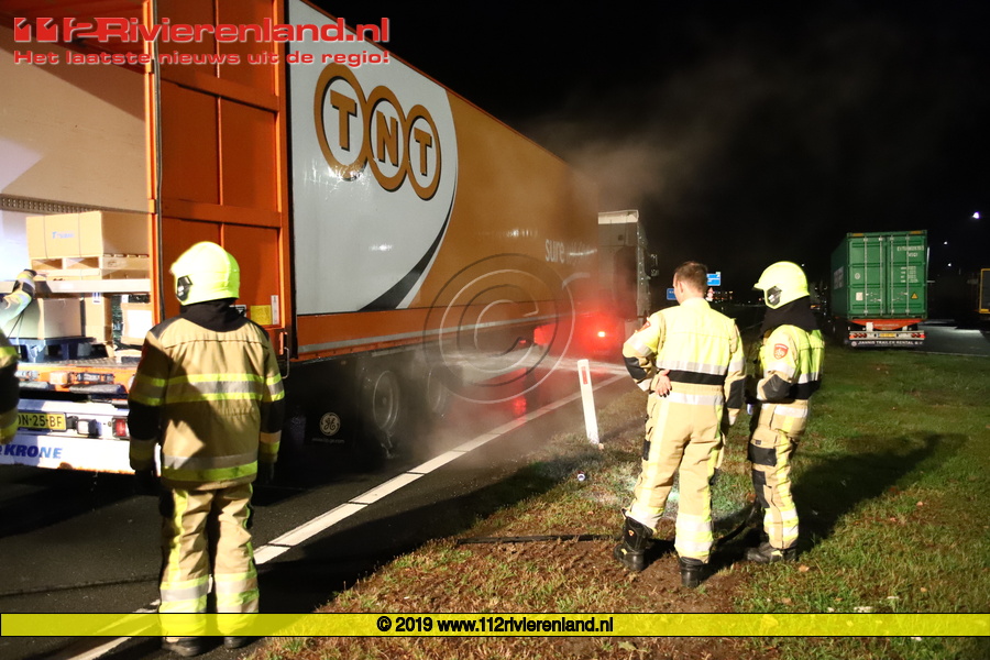 Rumpt - TNT oplegger in brand door vastgelopen remmen