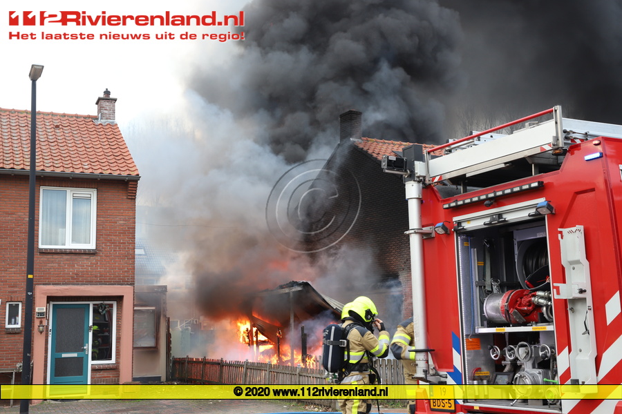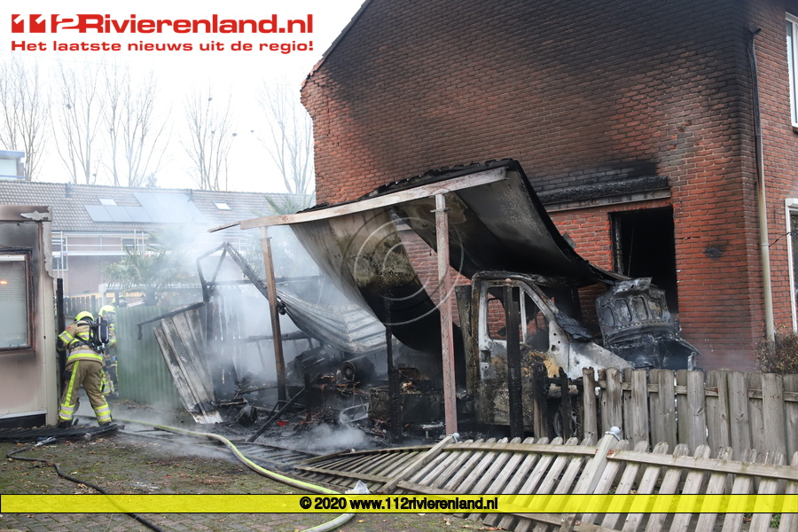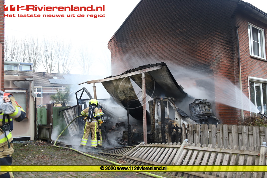 Tiel - Brand in een camper en slaat over naar woning