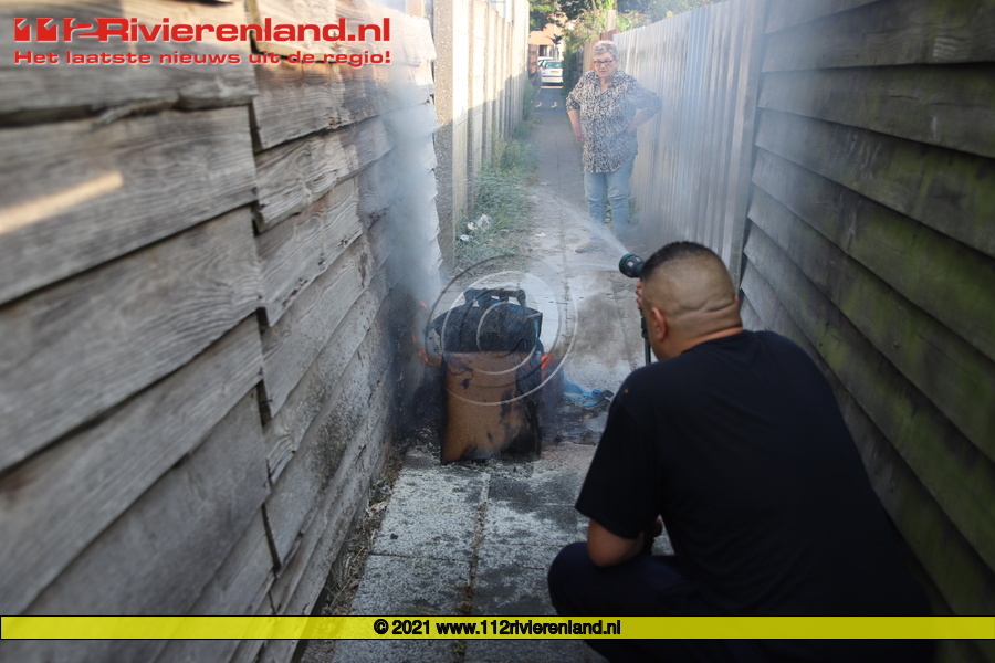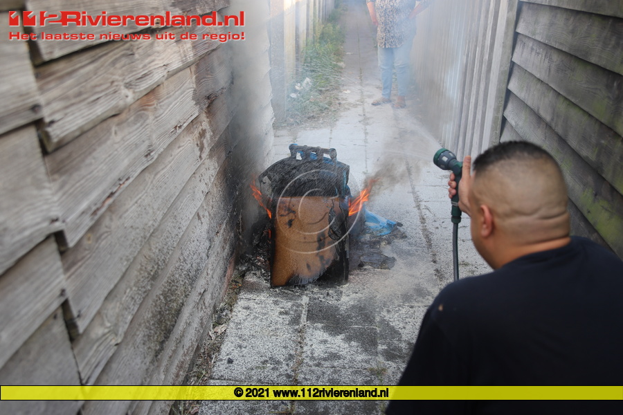 Tiel - Plastic papiercontainer gaat in vlammen op Lindestraat