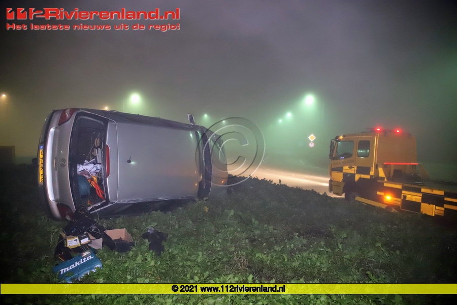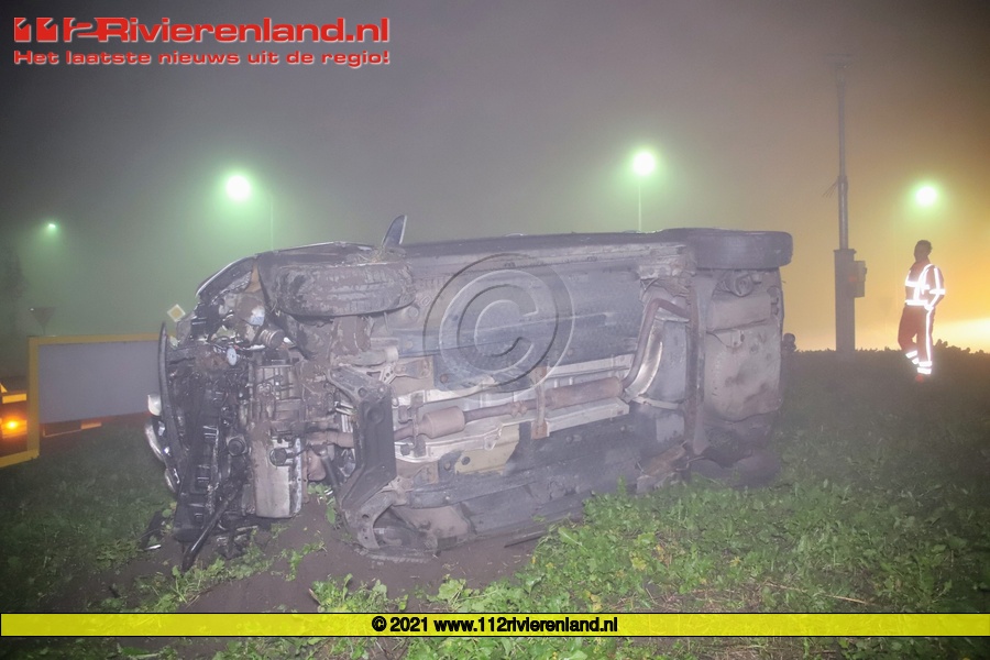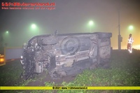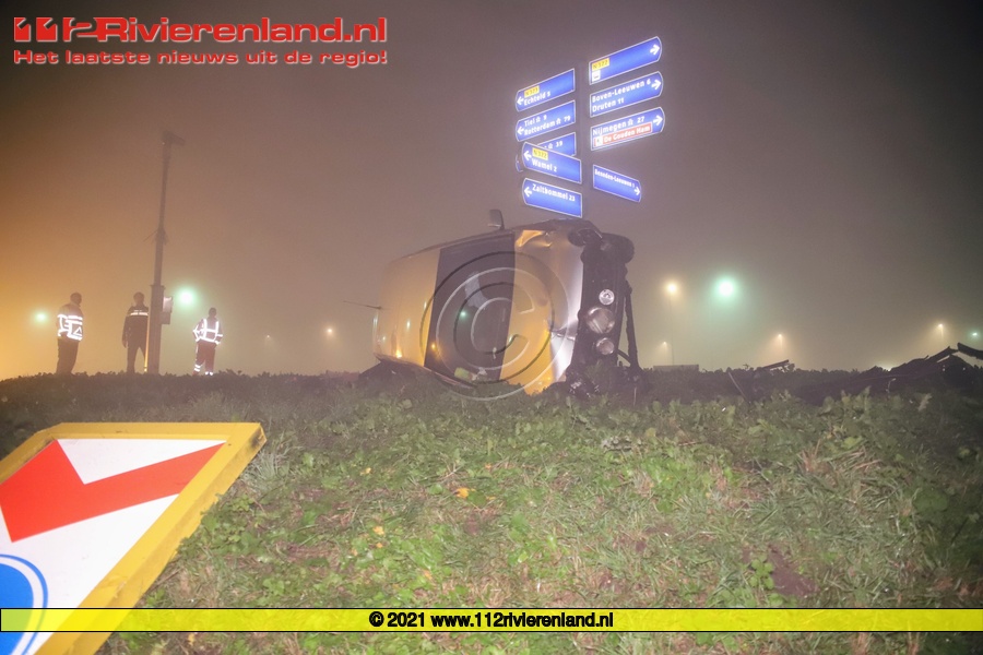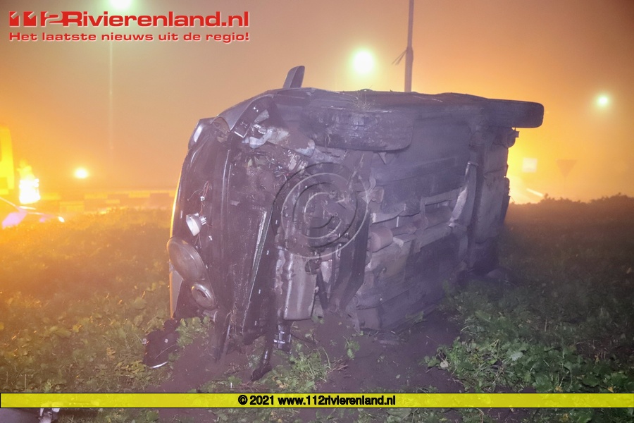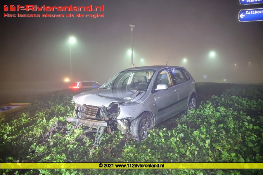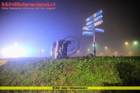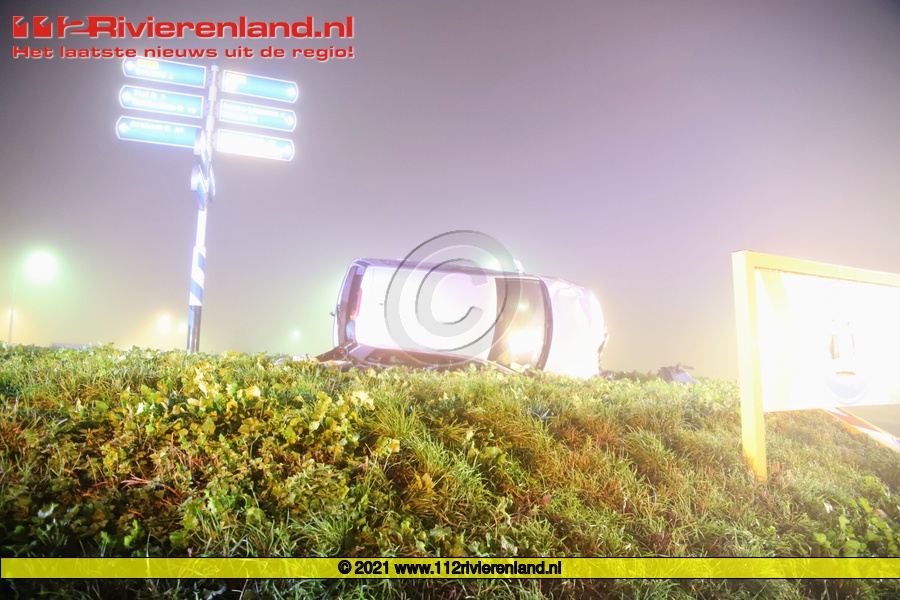 Beneden Leeuwen - Auto belandt midden op de rotonde