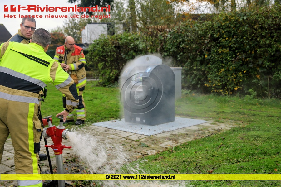 Tiel - Brandweer blust containerbrand