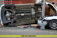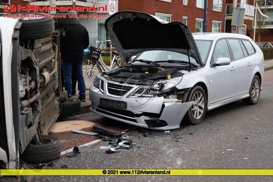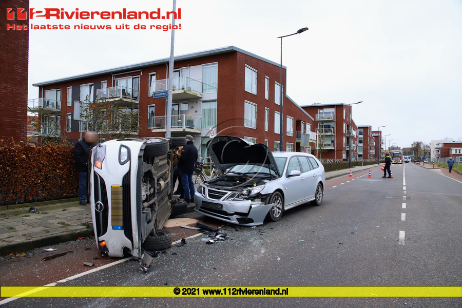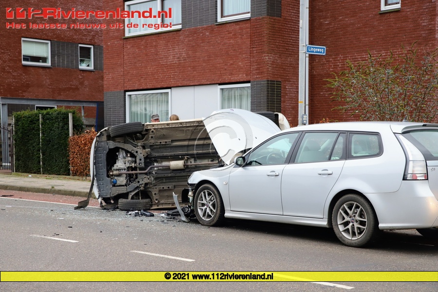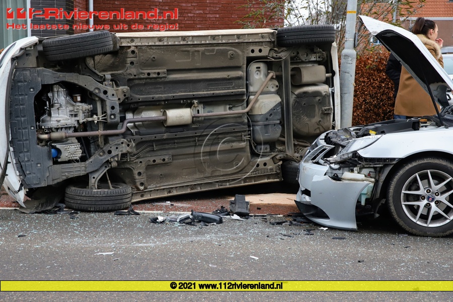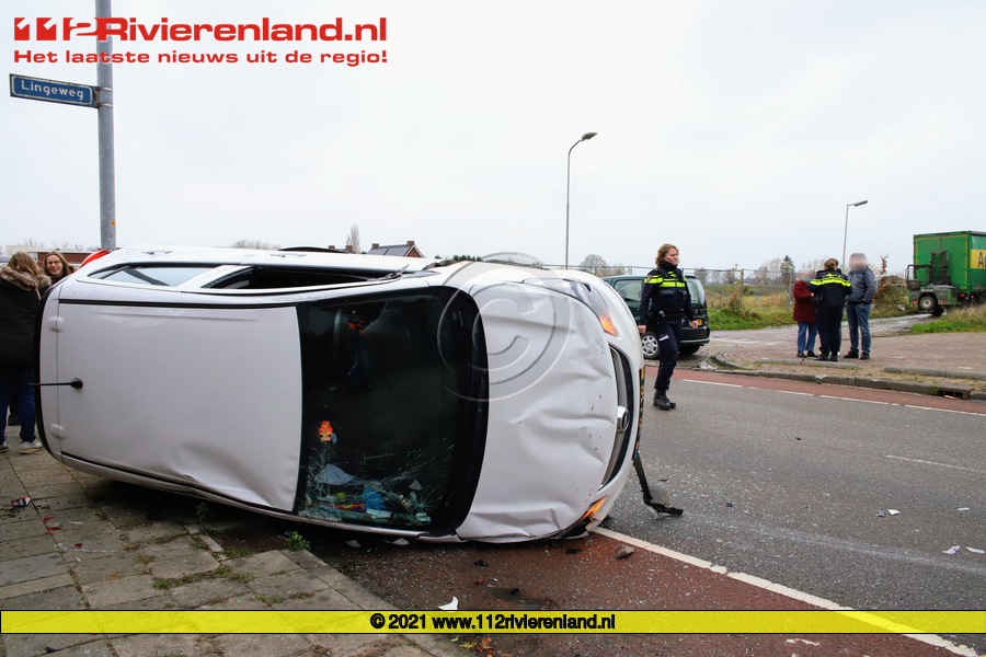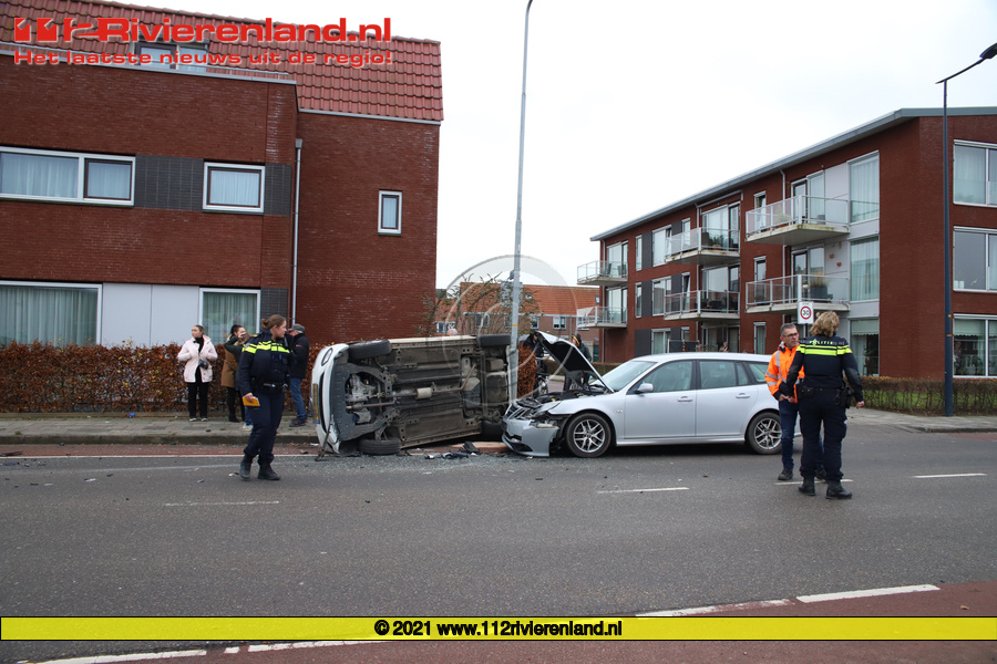 Geldermalsen - Auto belandt op de kant na aanrijding