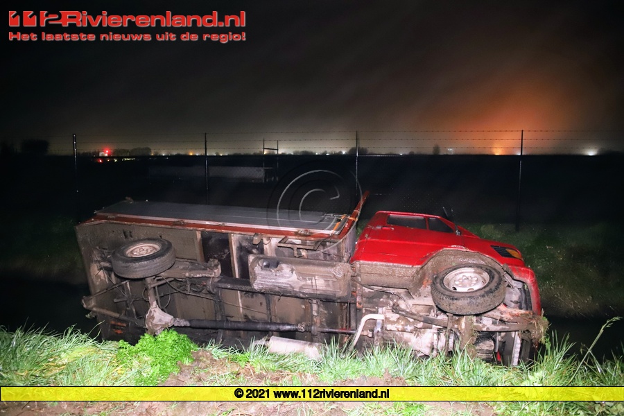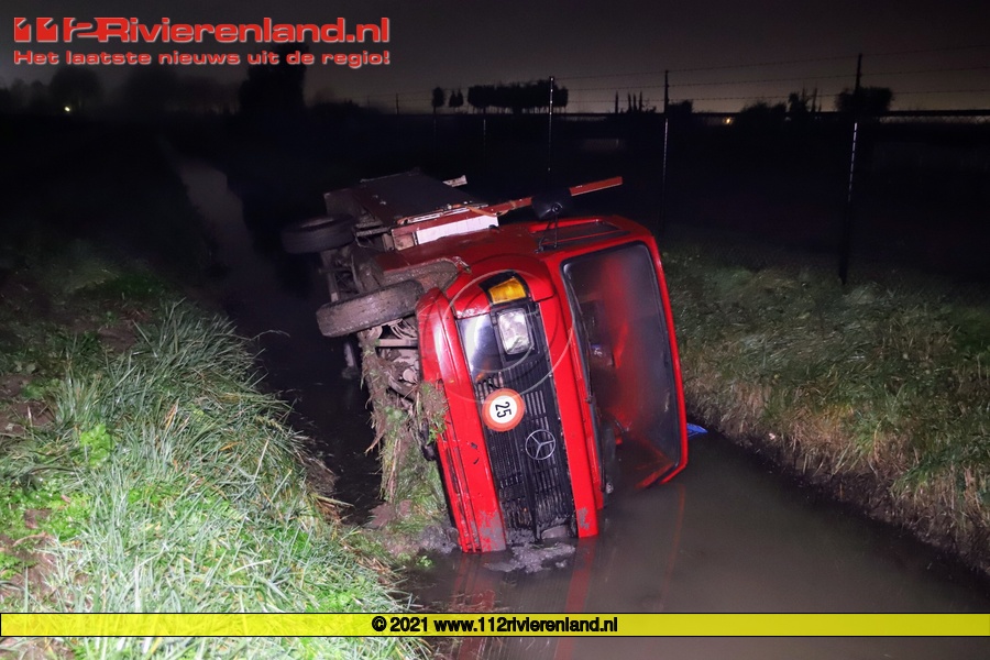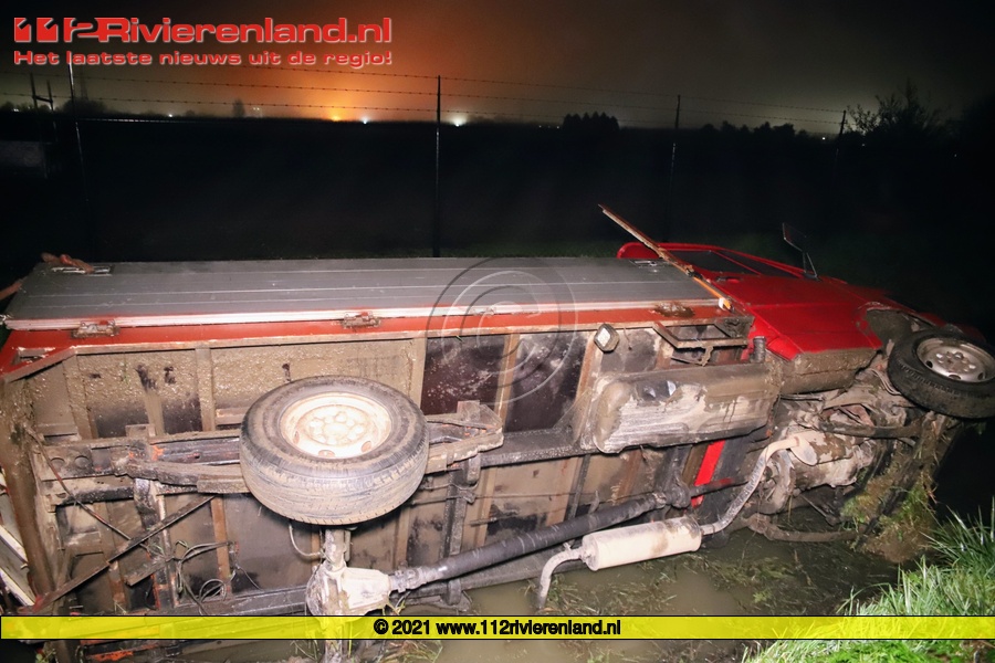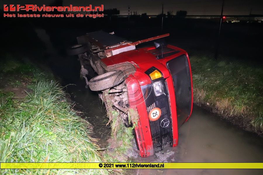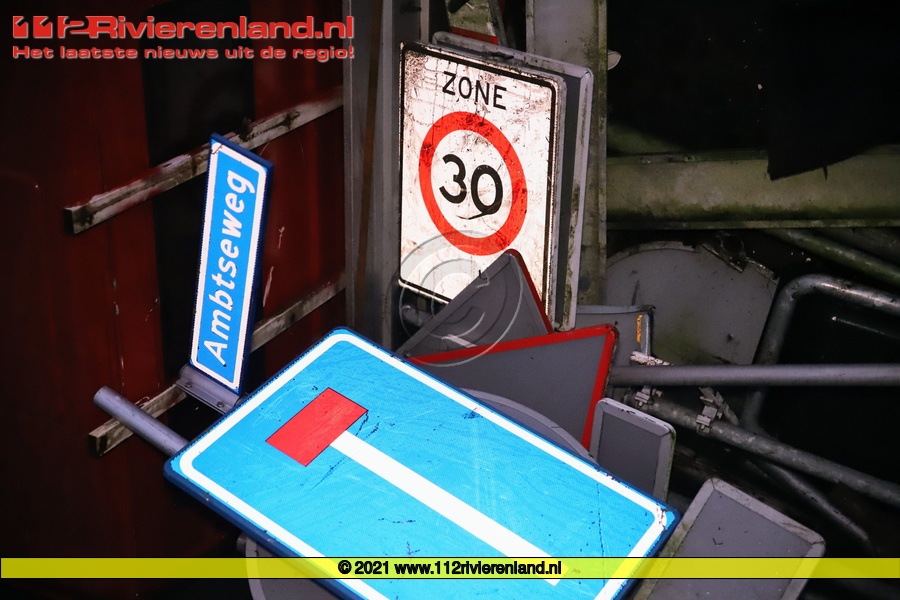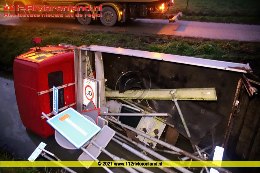 Kesteren - Bakwagen met verkeersborden in de sloot