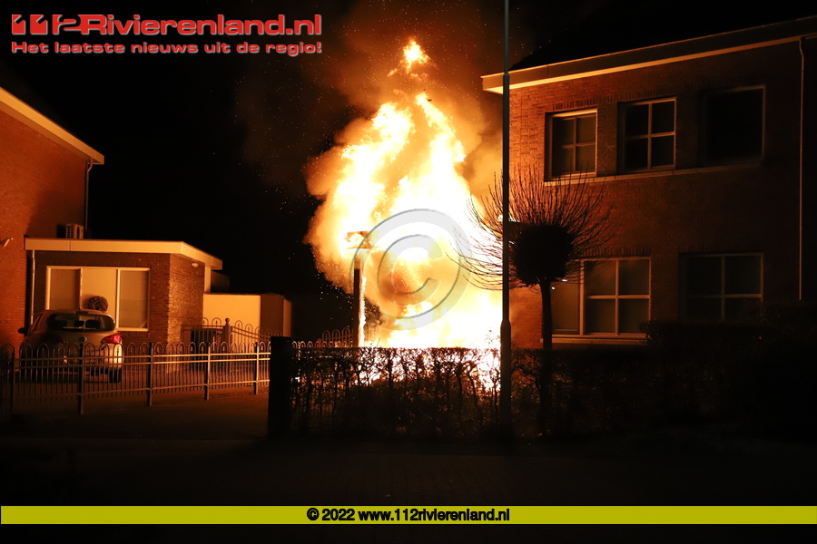 Wadenoijen - Auto vliegt onder carport in brand