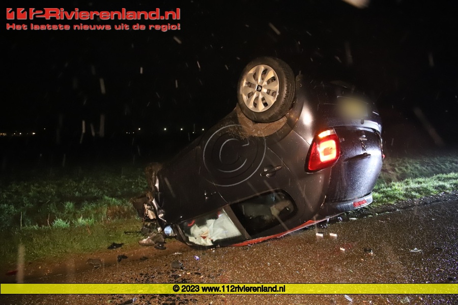 Erichem - Auto belandt op de kop bij eenzijdig ongeval