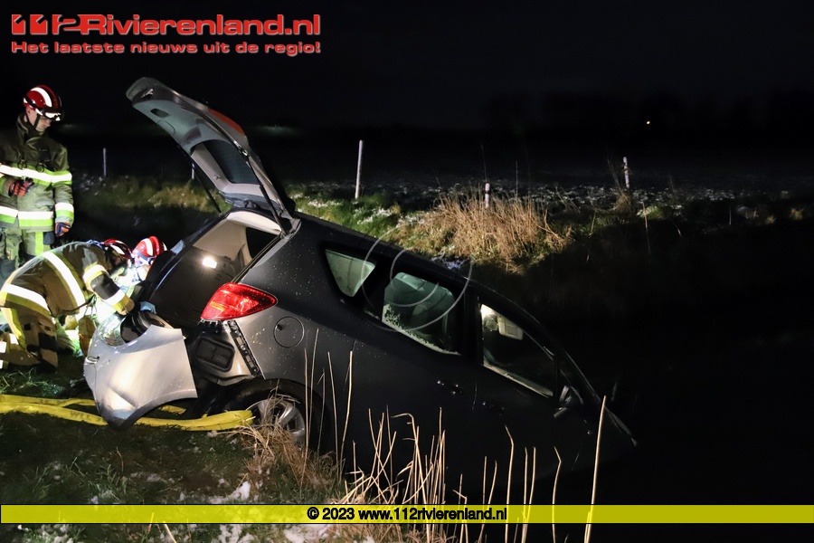 Tiel - Bestuurder van een personenauto mist de bocht en belandt in de sloot