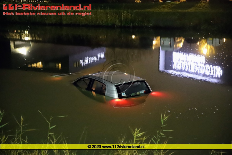 Tiel - Auto te water achter Kuehne and Nagel