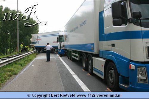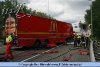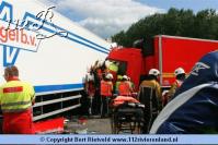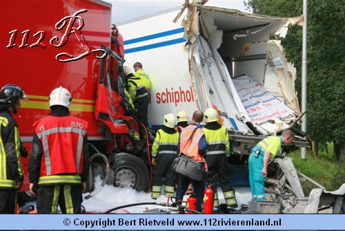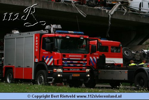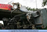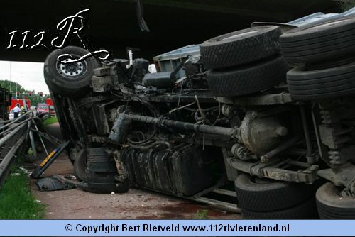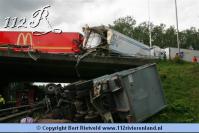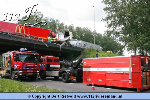 Nijmegen - vrachtwagen van viaduct gestort bij aanrijding A73