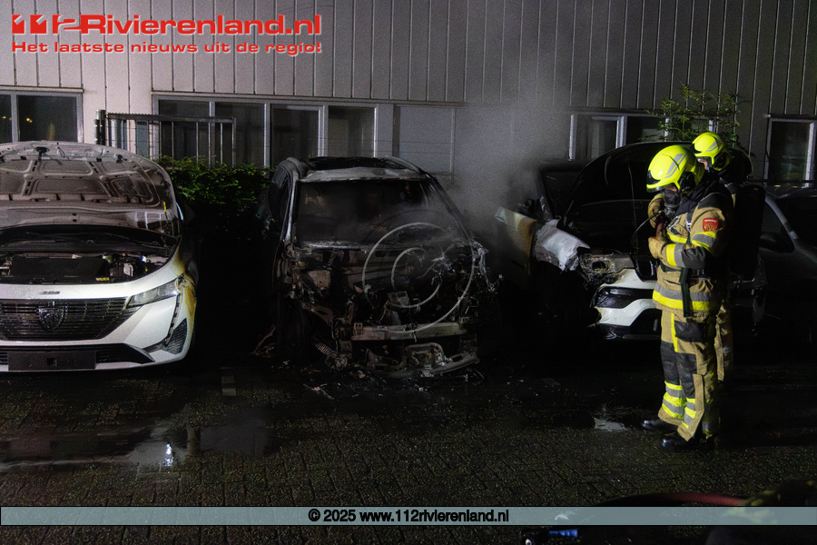 Tiel - Drie auto's total loss bij brand aan de Franklinstraat