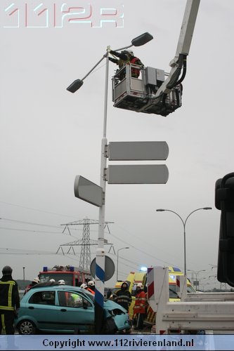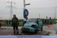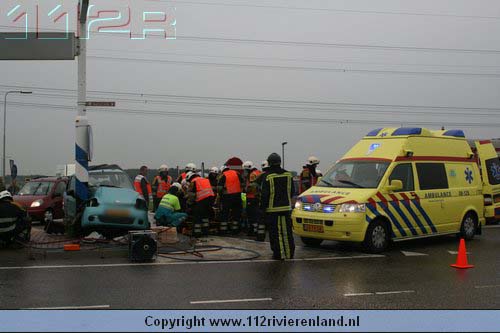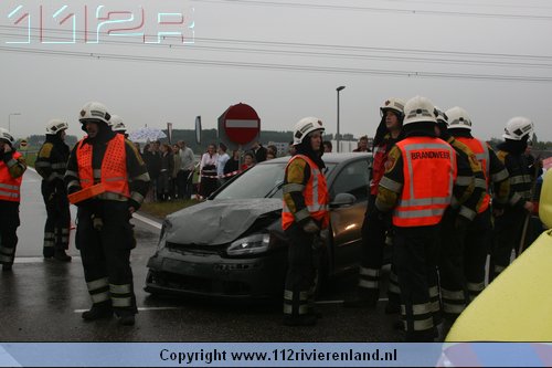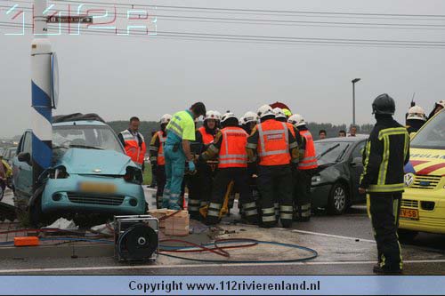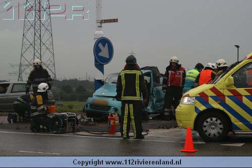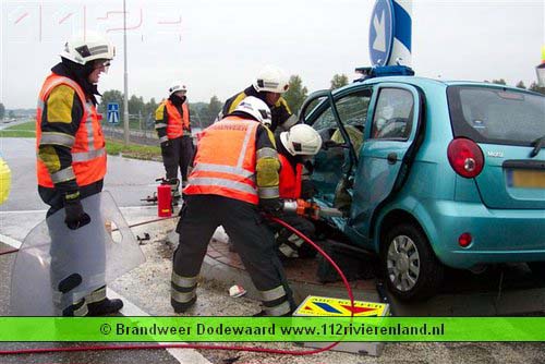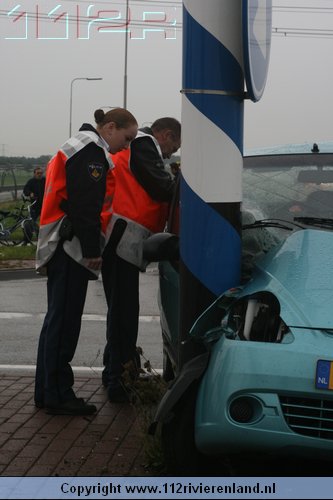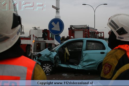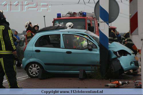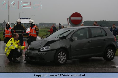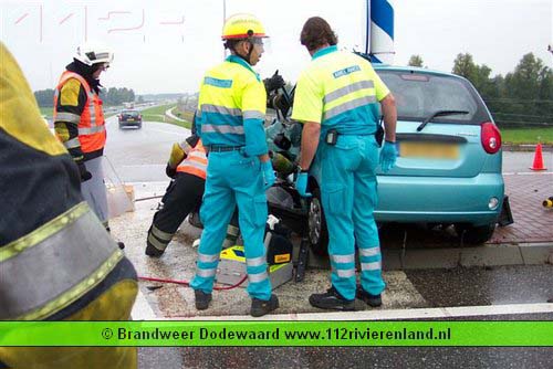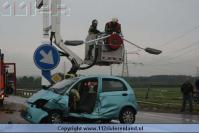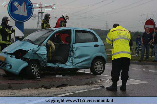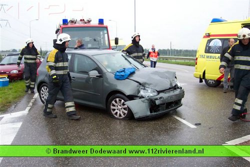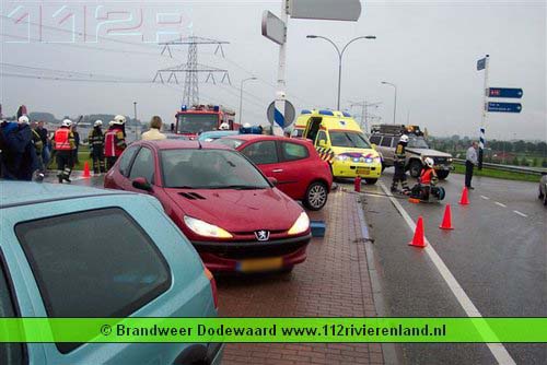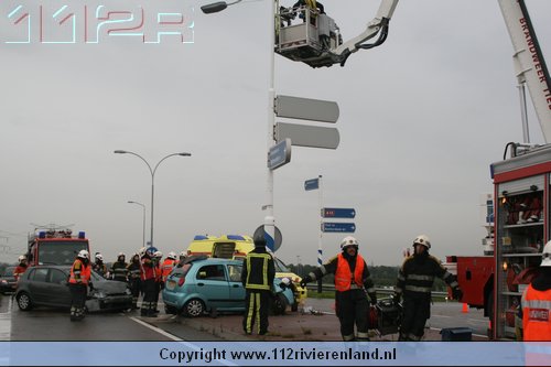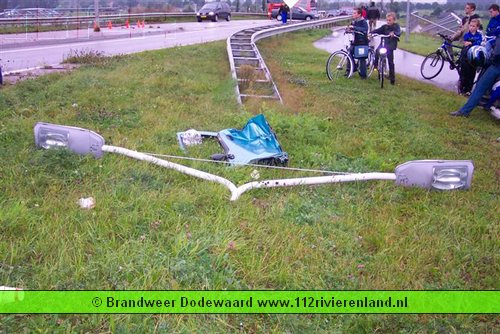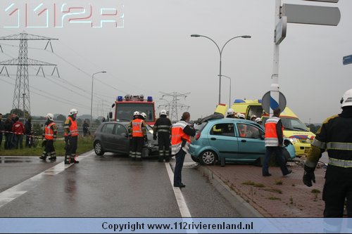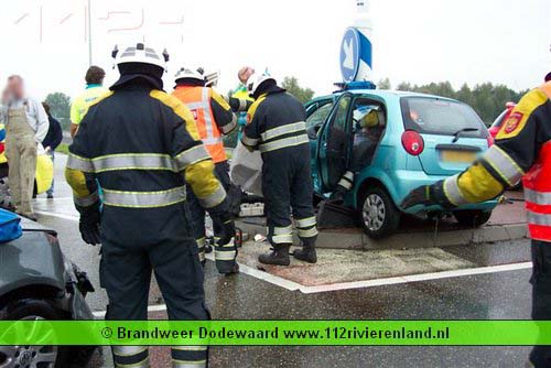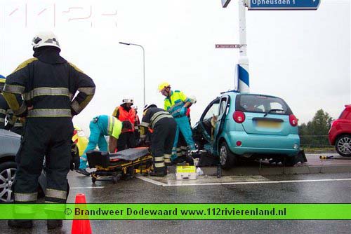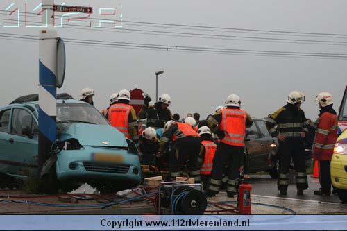 Dodewaard - Twee auto`s op elkaar waarvan een tegen een lantaarnpaal