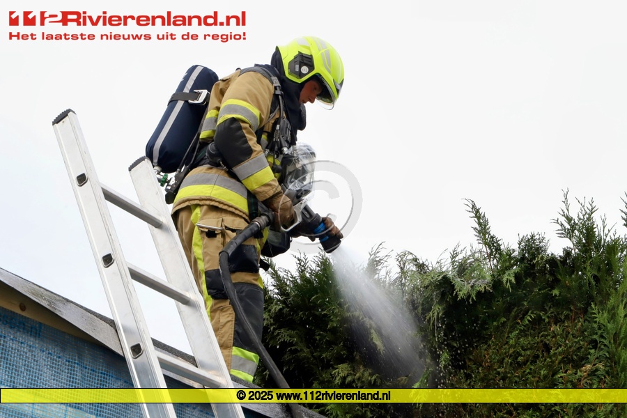 Tiel - Coniferenhaag vliegt in brand bij werkzaamheden aan dak