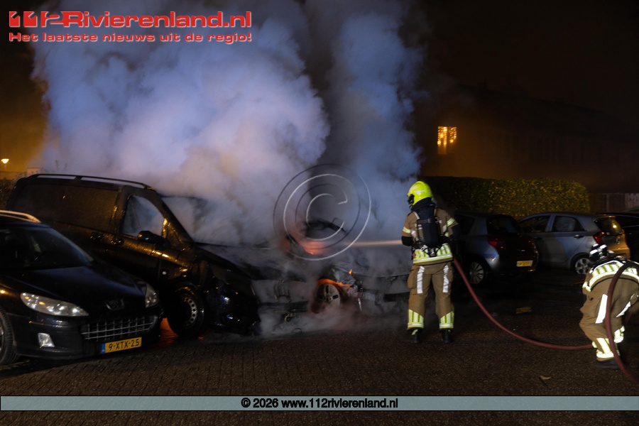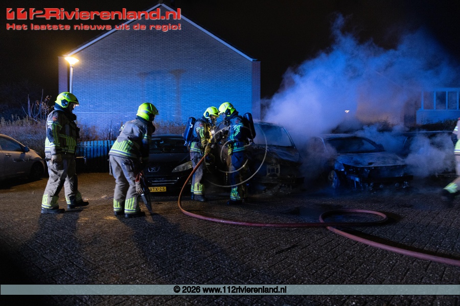 Tiel - drie auto's verwoest door brand Hennepe