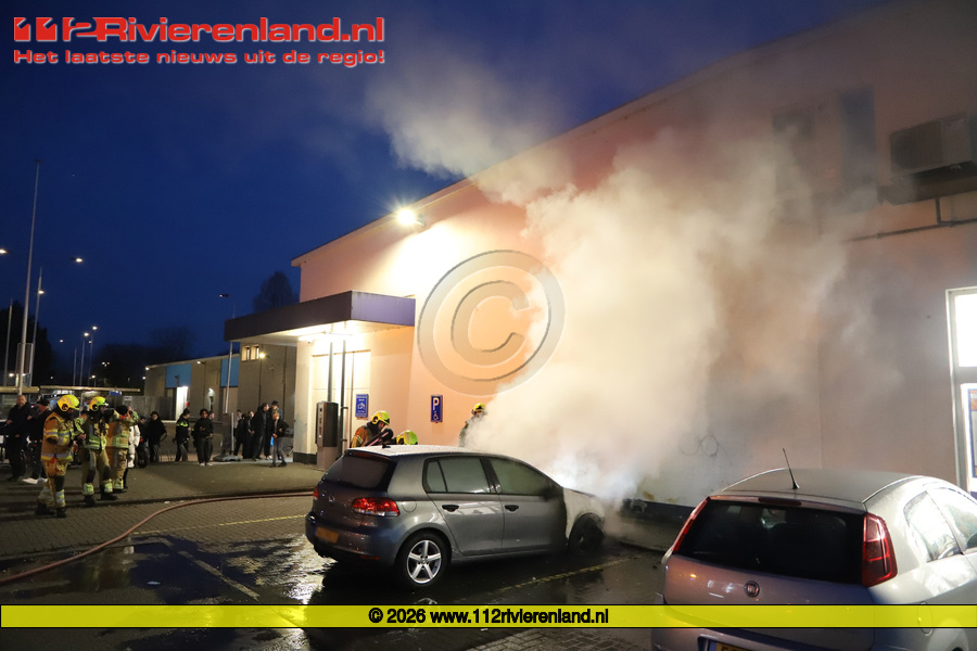 Tiel - Autobrand op de parkeerplaats Action