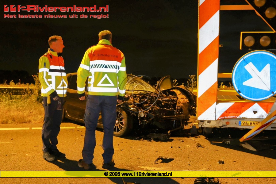 Zijderveld - Auto rijdt tegen pijlwagen op de A2