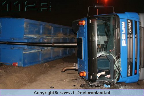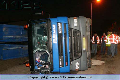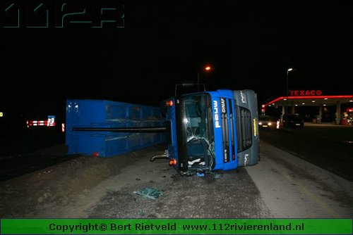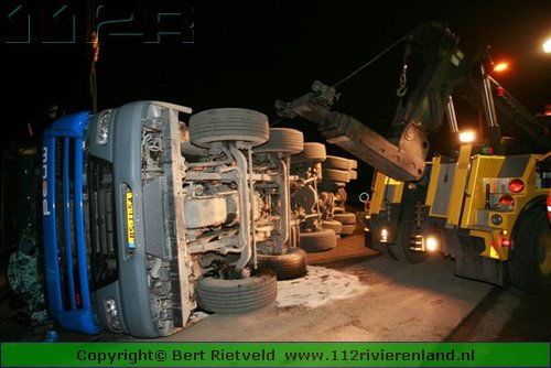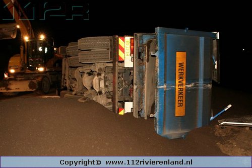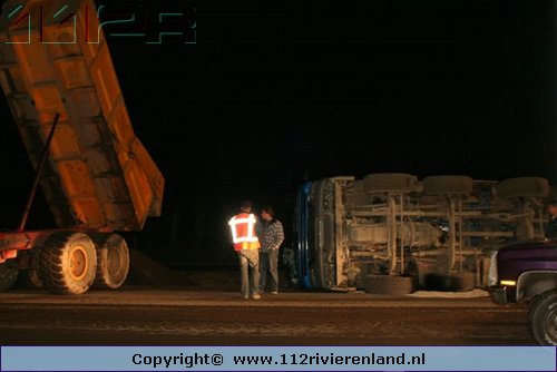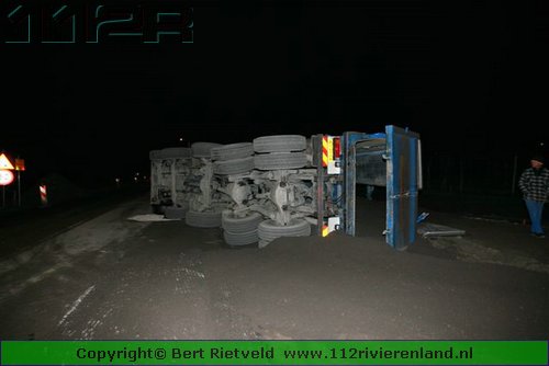 Velddriel - Vrachtwagen gekanteld Provincialeweg