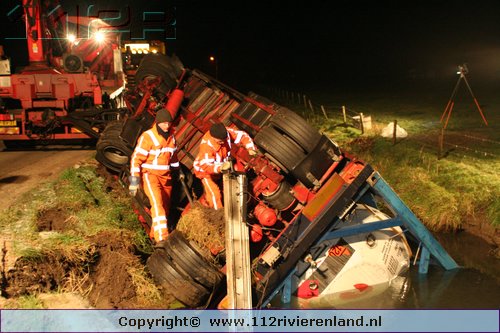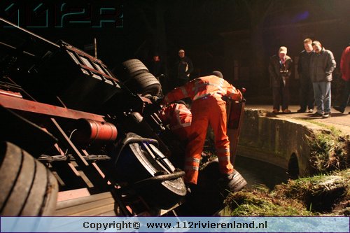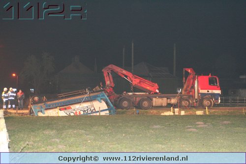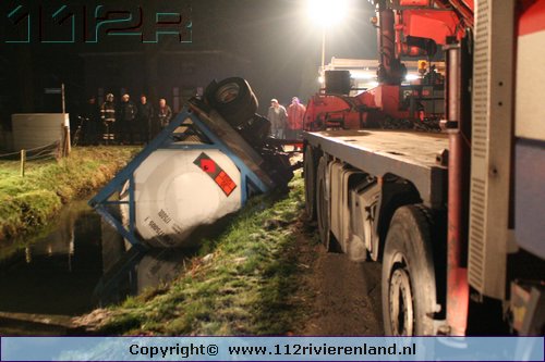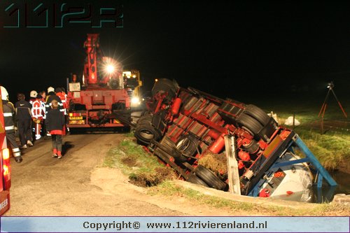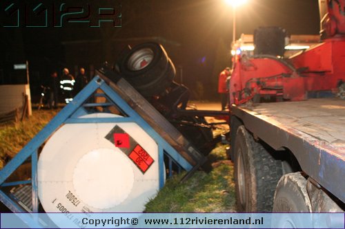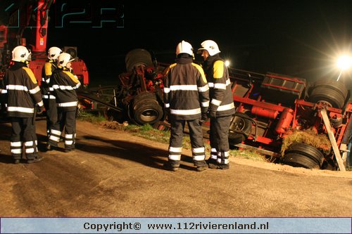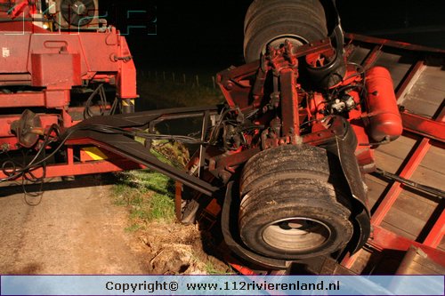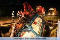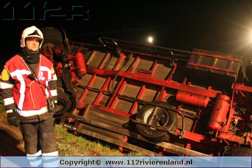Heeselt - Aanhanger op zijn kant in de sloot