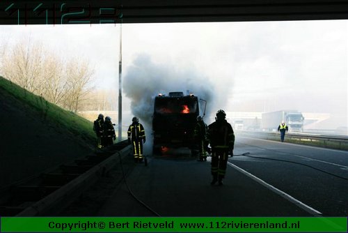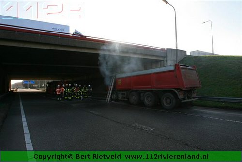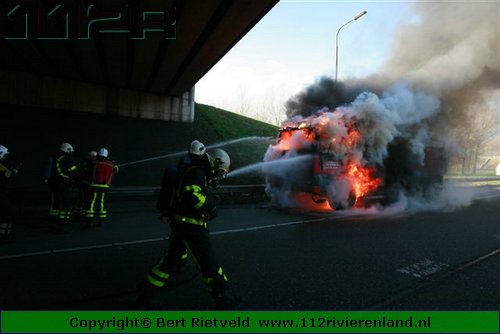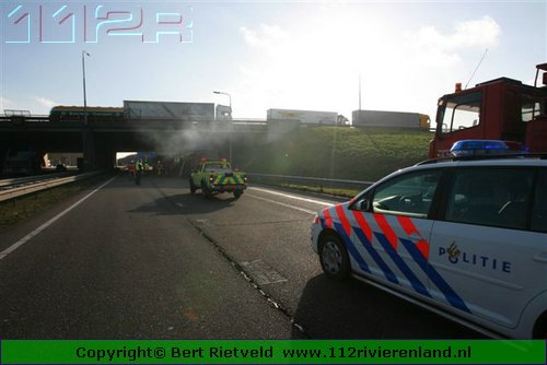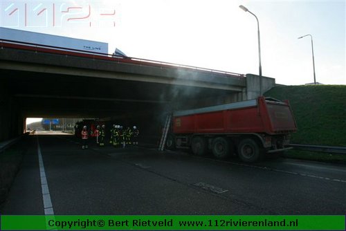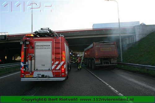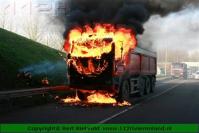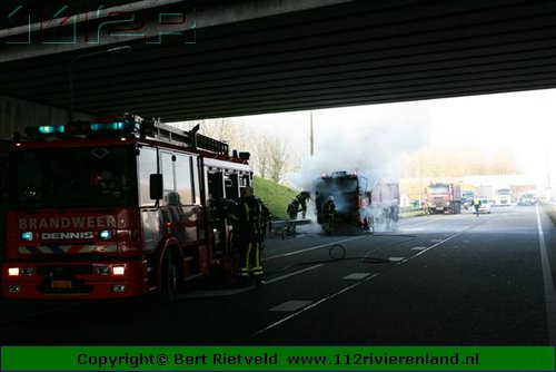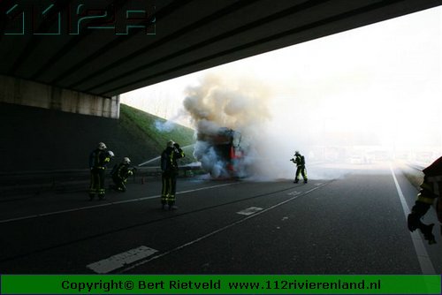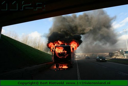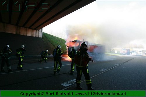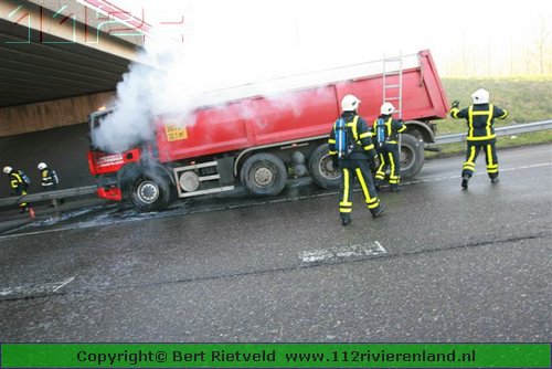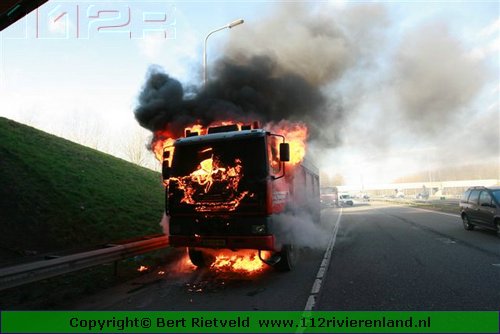 Culemborg - Vrachtwagen geheel uitgebrand op de A2