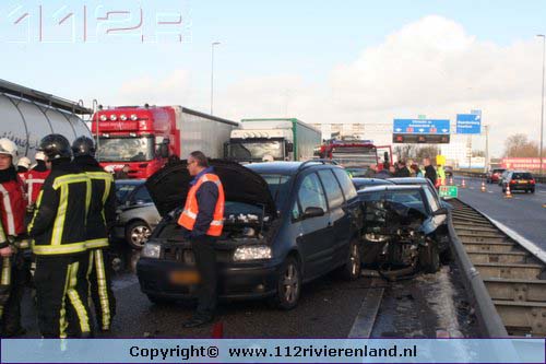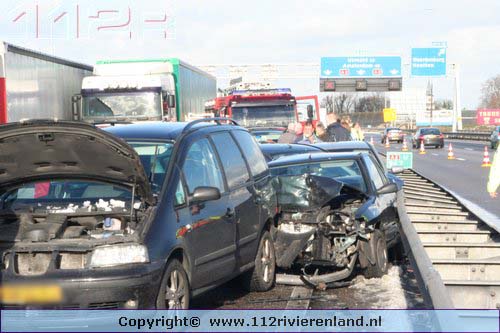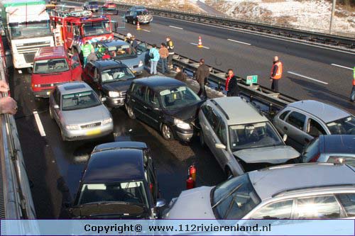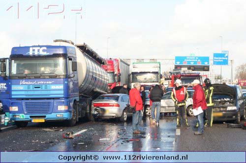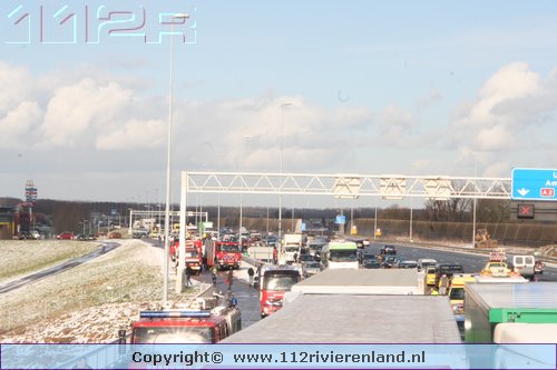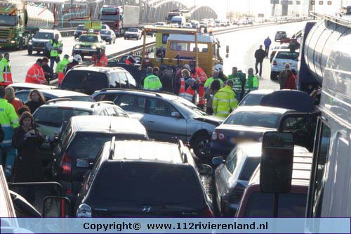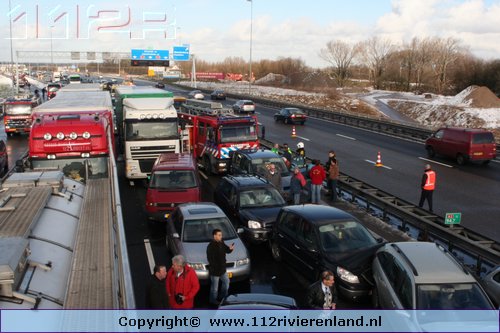Waardenburg - Ruim 50 auto`s betrokken bij kettingbotsing op de A2