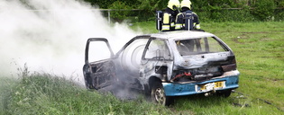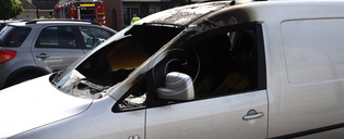 Beneden Leeuwen - Voertuig van klusjesman in brand