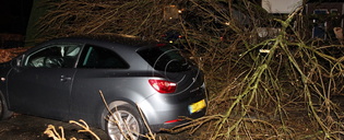 Tiel - Boom valt om door storm Antoon Coolenstraat