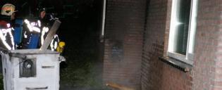 Tiel - Brand in container tegen gevel MEE