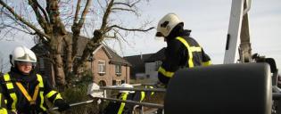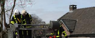 Ophemert - Hoogwerker vast na inzet schoorsteenbrand Waaldijk