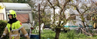 Rijswijk - Caravan brandt uit achter woning