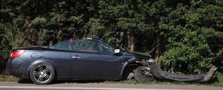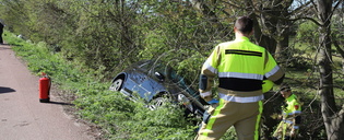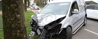 Wadenoijen - Auto tegen de boom op de Bommelweg