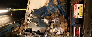 Dodewaard - Gekantelde vrachtwagen blokkeert de A15 richting Nijmegen