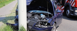 Kesteren - Auto botst frontaal tegen lantaarnpaal op de Provincialeweg