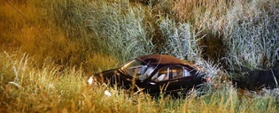 Culemborg - Auto glijdt van talud en belandt in de sloot