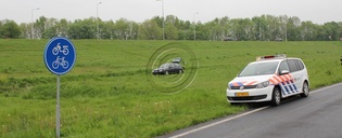 Tiel - Auto belandt in greppel afrit A15 Tiel-West