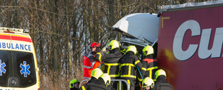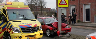 Tiel - Auto botst frontaal tegen lantaarnpaal Westroijensestraat