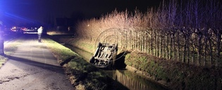 Dreumel - Auto op de kop in de sloot Van Heemstraweg