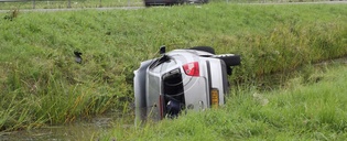 Wadenoijen - Auto belandt in droge sloot Bommelweg