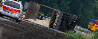Kesteren - Aanhanger met zaagsel op zijn kant N233