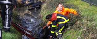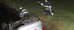 Buren - Auto op de kop in de sloot Aalswijksestraat