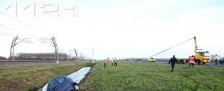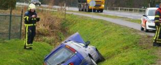 Velddriel - Auto belandt onder aan talud in de sloot A2