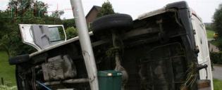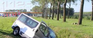 Ingen - Bestelbusje op zijn kant Rijnbandijk