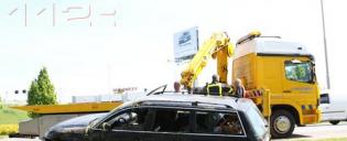 Waardenburg - Auto in de sloot voor de brandweerkazerne Waardenburg