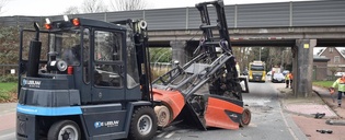 Waardeburg - Vrachtwagen met heftruck knalt tegen spoorviaduct