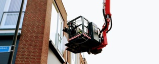 Tiel - Glasplaat hangt gevaarlijk los, brandweer bied hulp