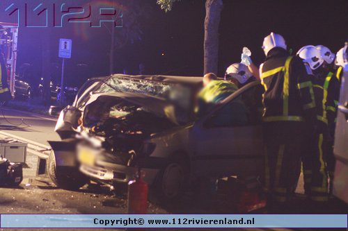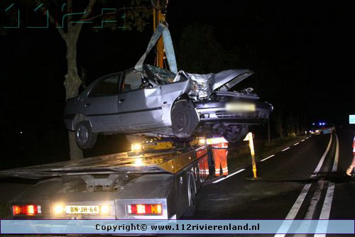 Hellouw - Auto tegen de boom Graaf Reinaldweg