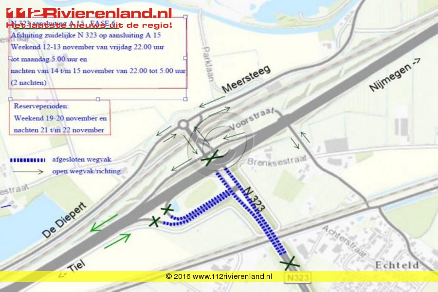 Echteld / Leeuwen - Provincialeweg N323 dicht door werkzaamheden