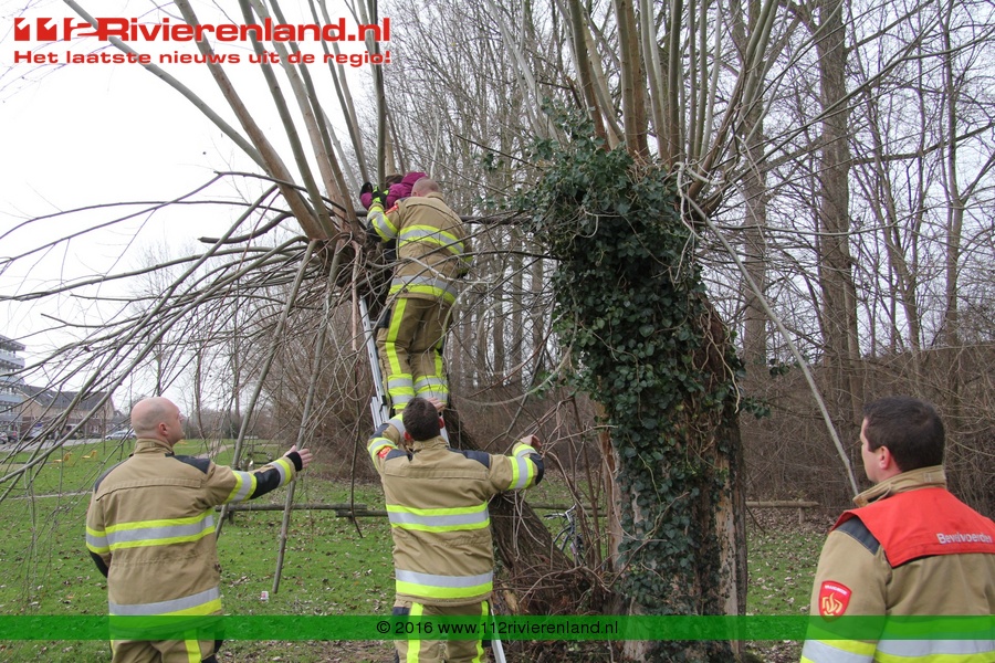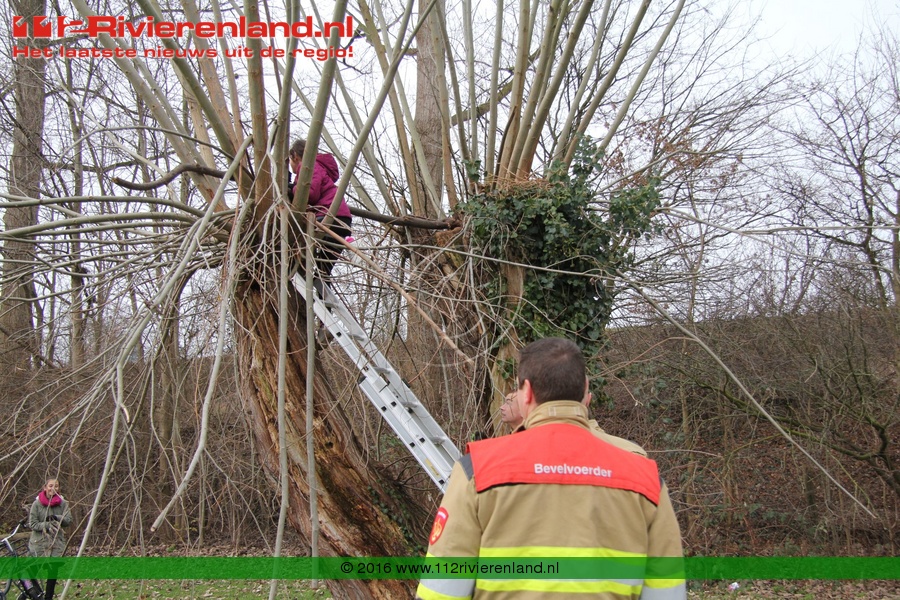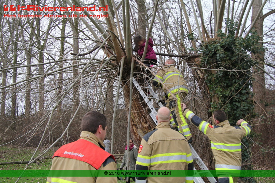 Tiel - Brandweer haalt meisje uit boom Peppellaan