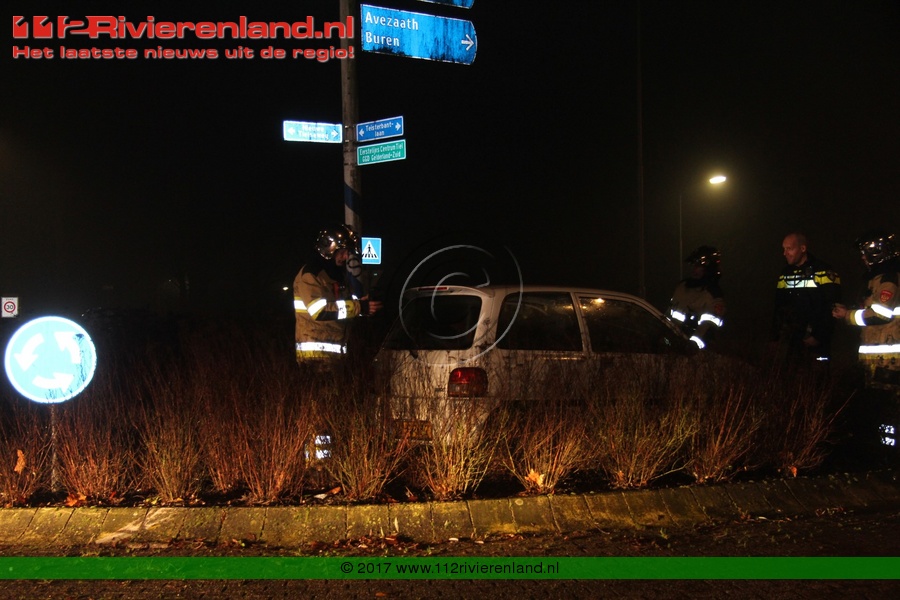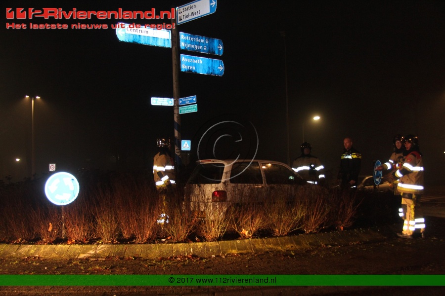 Tiel - Auto mist rotonde Nieuwe Tielseweg