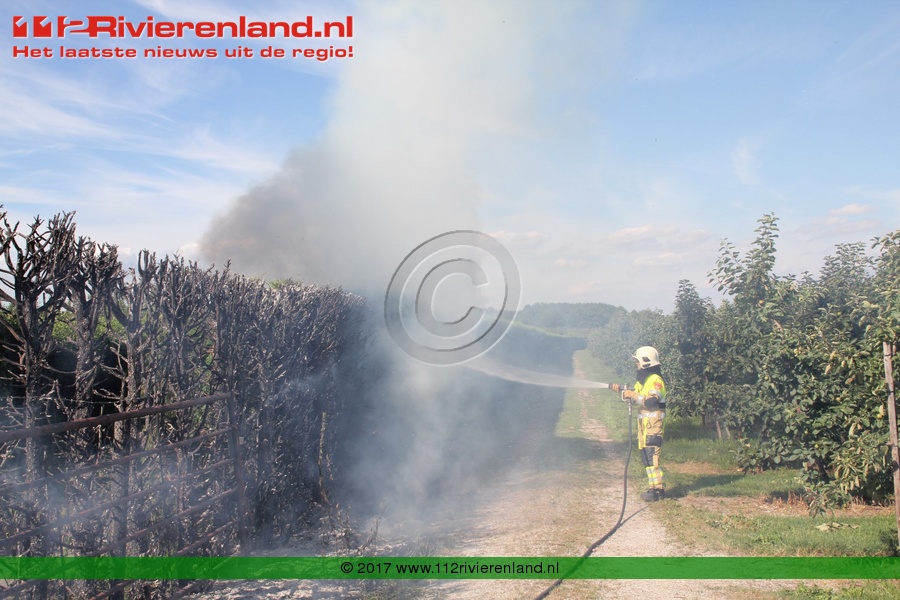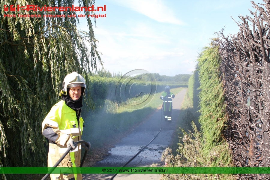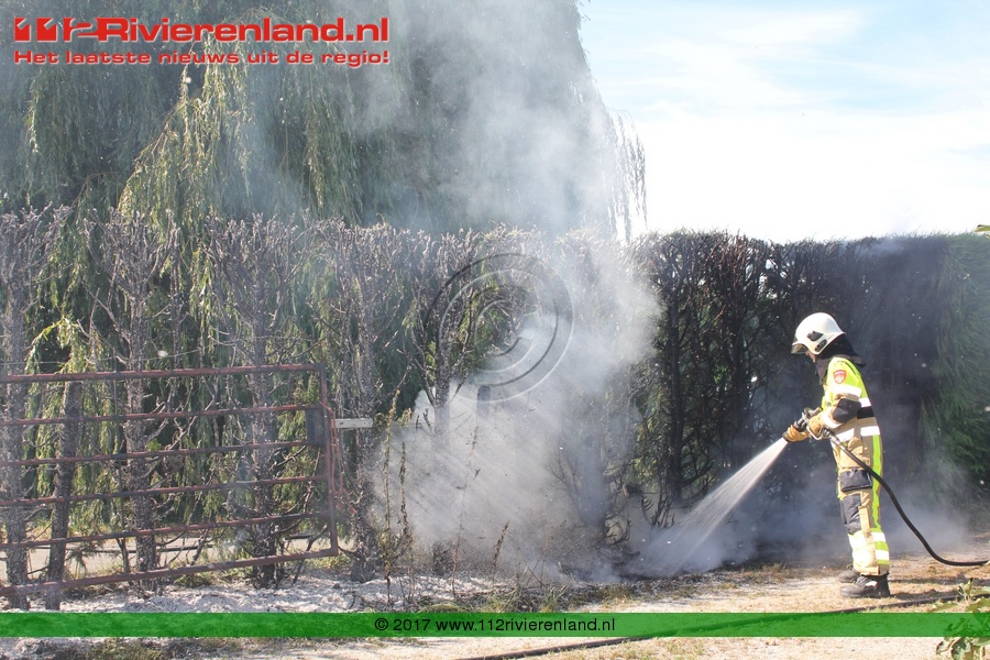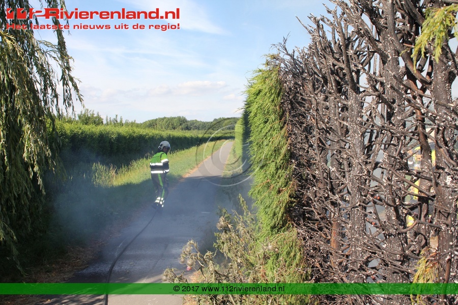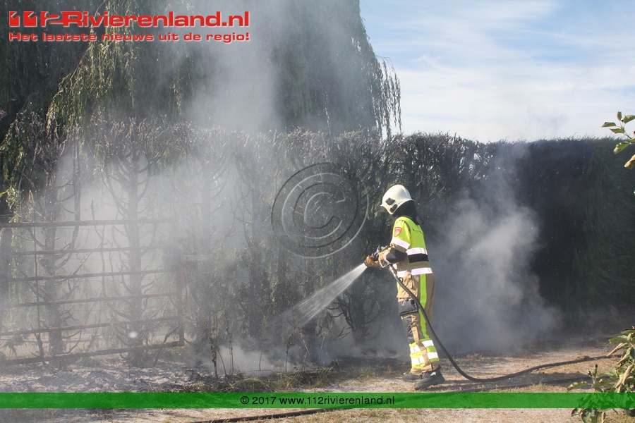Wadenoijen - Coniferenhaag in brand aan de Dreef