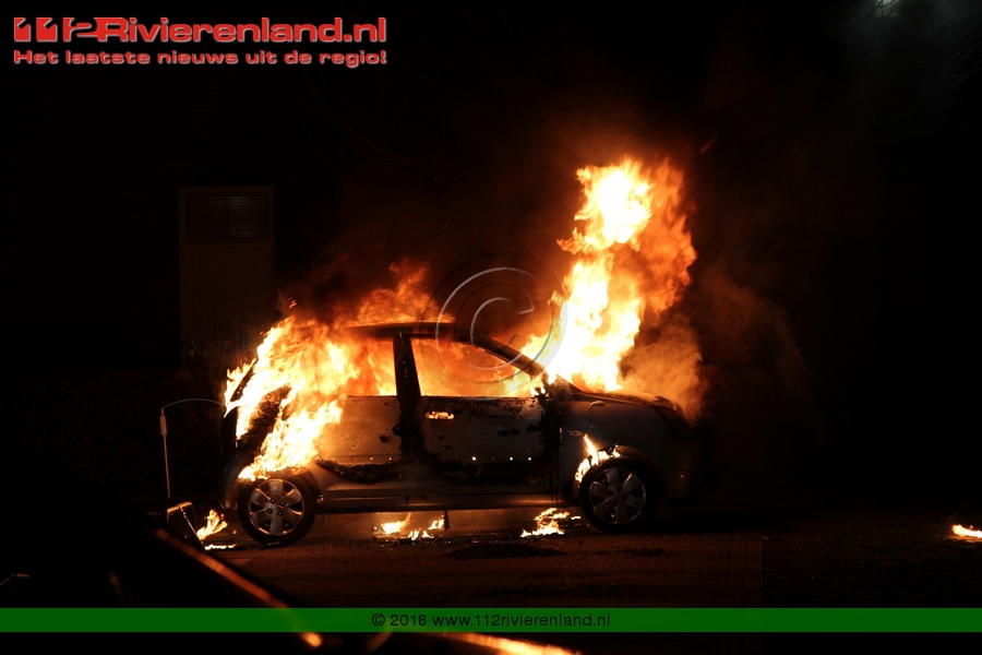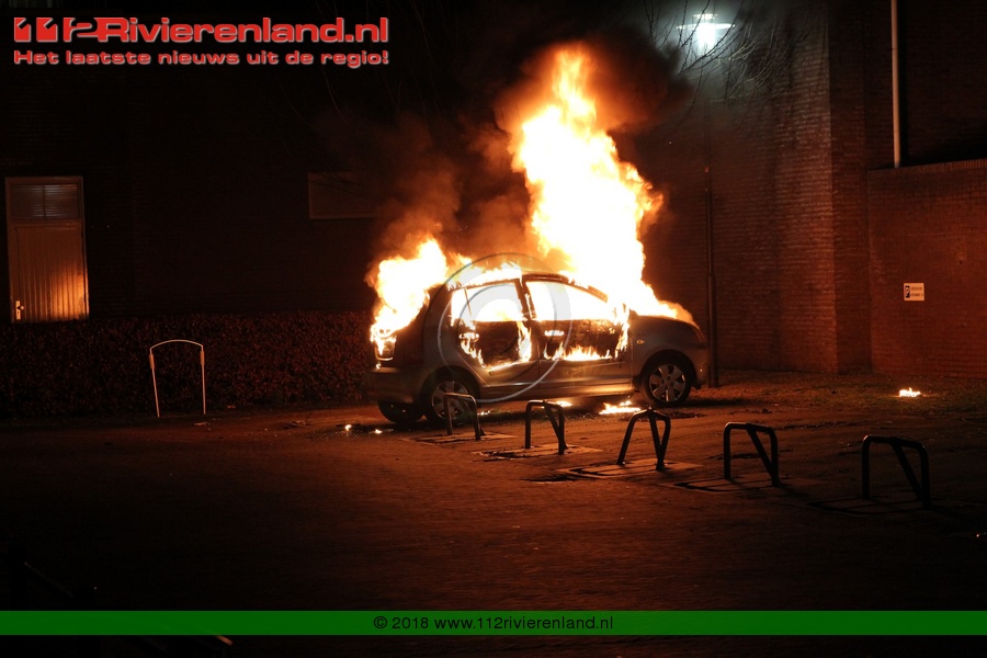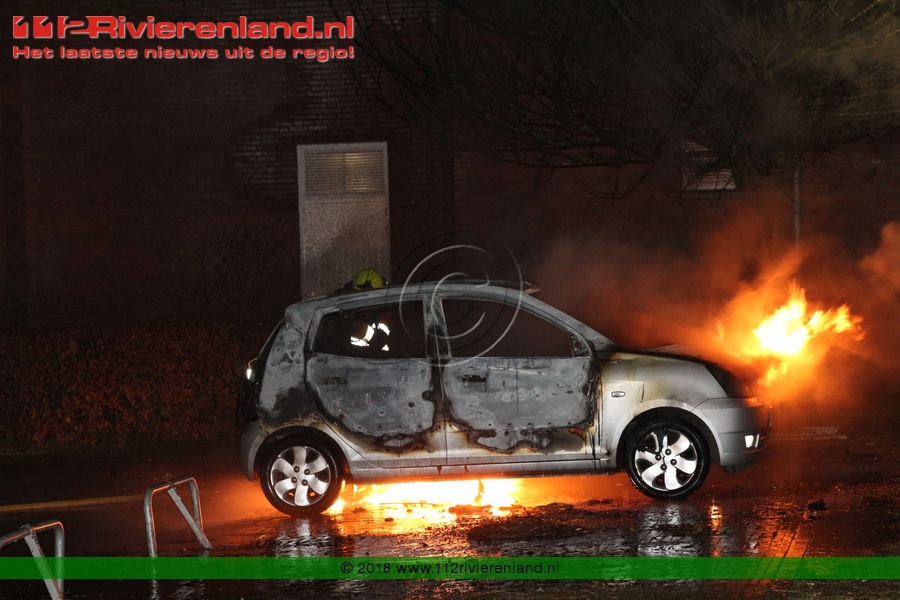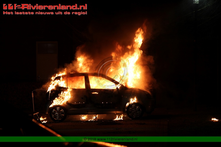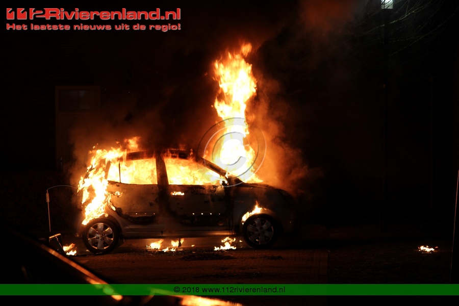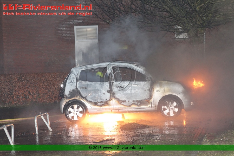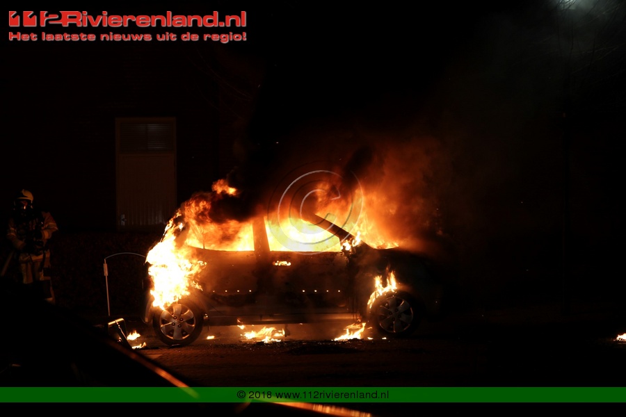 Tiel - Auto verwoest door brand Grotebrugse Grintweg Tiel