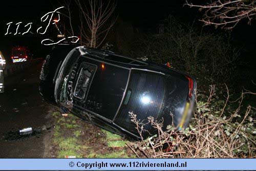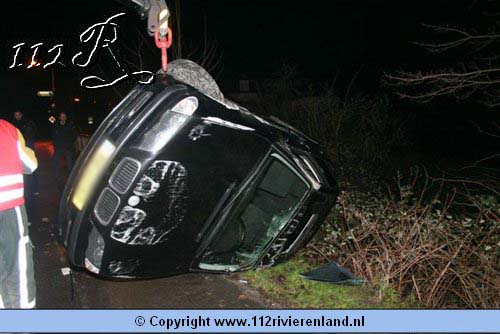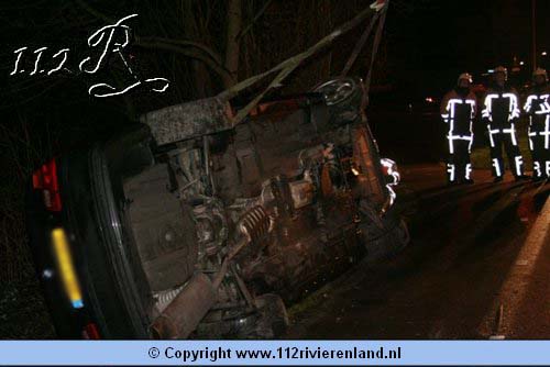 Buren - Auto op zijn kant Tielseweg